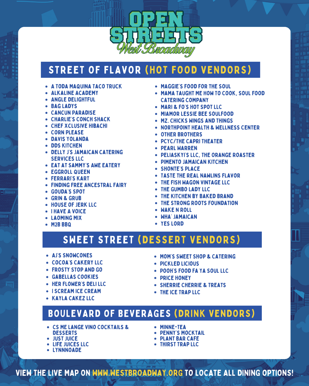 Open Streets West Broadway is a free, family-friendly event that offers a variety of activities such as biking, walking, playing, eating, dancing, and singing. The event covers 13 blocks on West Broadway and attracts over 250 participants and vendors with over 3,000 attendees. This event is not just a street festival, but it is a celebration of community and allows neighbors to experience city streets as public spaces where communities thrive.